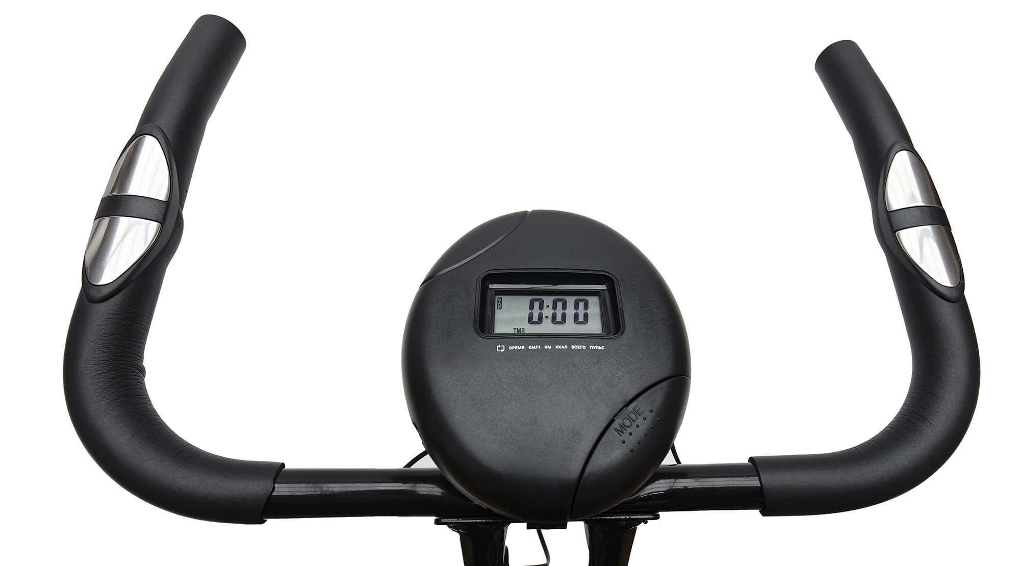 На руле закрепляется монитор в округлом пластиковом корпусе. Параметры тренировки отображаются на LCD-дисплее.