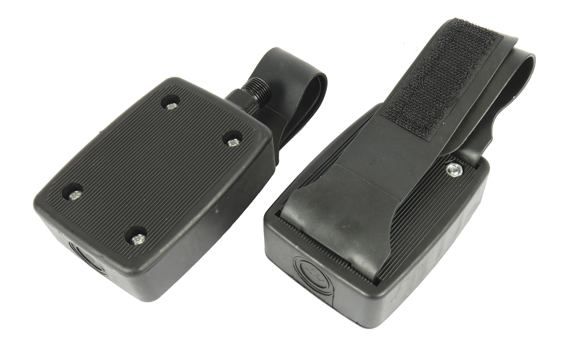 Педали соединяются с шатунами тренажера на стандартной для большинства современных велосипедов резьбе 9/16″-20tpi (почему это хорошо — мы расскажем ниже). На них — широкие «стремена» из экокожи, застегивающиеся на липучки-велкро.