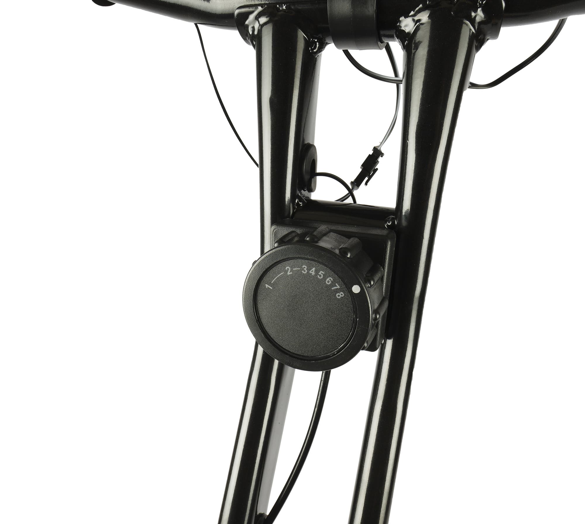 У круглой ручки регулировки, установленной ниже руля, восемь фиксированных положений. Это позволяет управлять усилием вращения педалей.