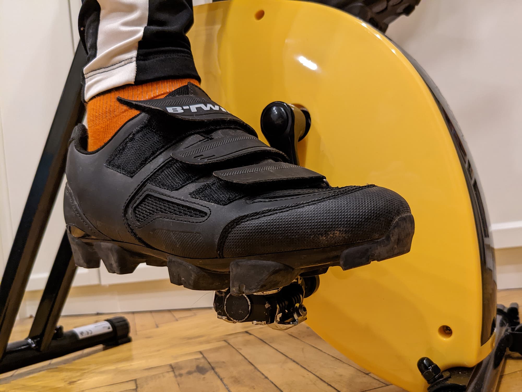 Такое изменение конструкции окажется полезным и велосипедистам, которые хотели бы потренироваться перед переходом с «топталок» на контактные педали: учиться быстро встегиваться в контакты и выстегиваться из них проще и безопаснее на устойчивом неподвижном тренажере.