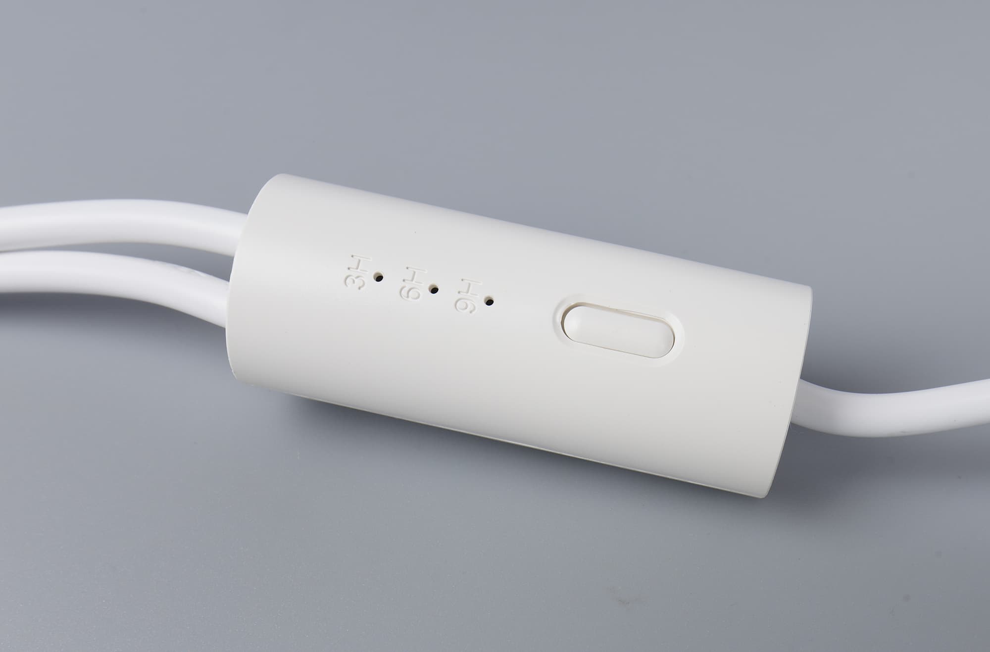Устройство питается от сети и включается в нее напрямую, без адаптеров. Между нагревательными элементами и вилкой располагается цилиндрический блок управления (подробнее мы рассмотрим его чуть ниже).
