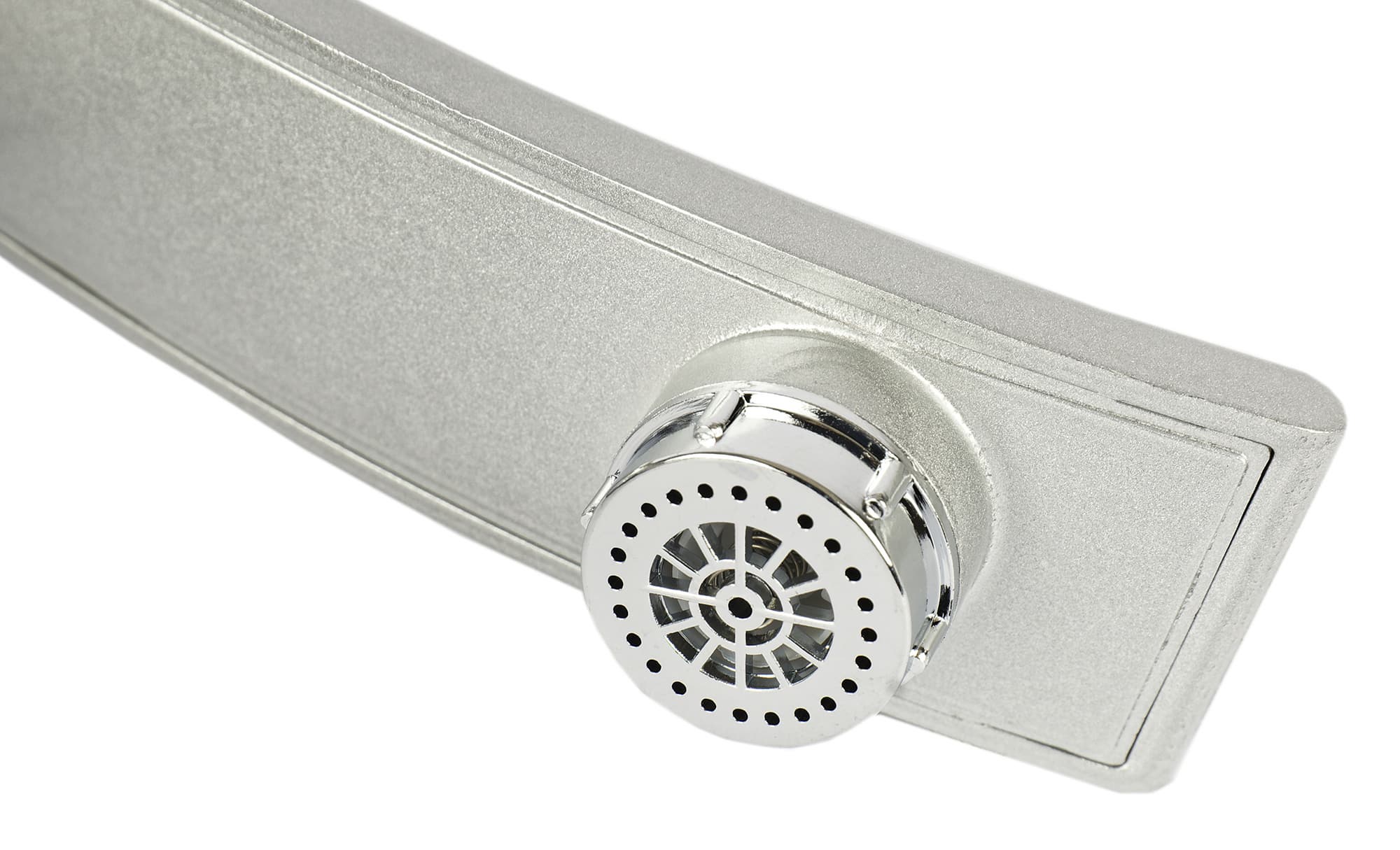 Плоский, слегка изогнутый излив может вращаться на 180° и оборудован съемным аэратором, формирующим струю воды.