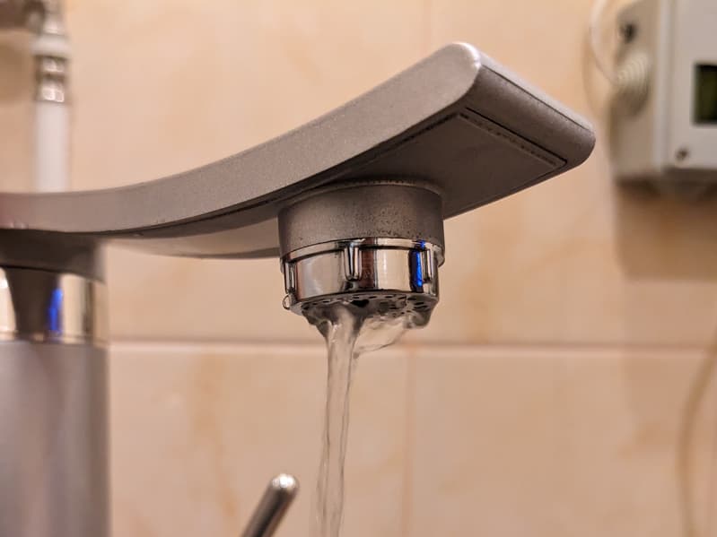 В среднем и нижнем положении ручки подогрев отключен, а дисплей неактивен. Напор регулируется плавно — как у обычного крана. Температура зависит от напора: чем он слабее, тем горячее будет вода.