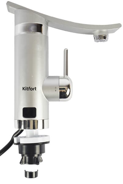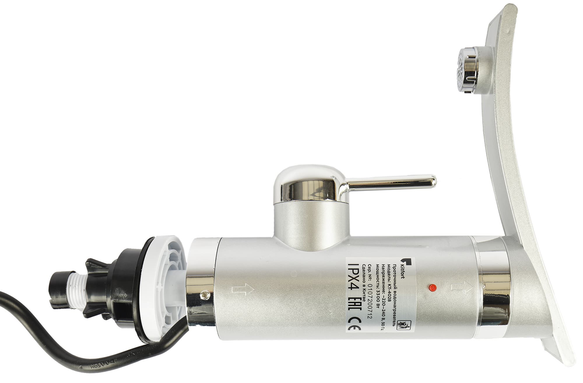 Проточный нагреватель Kitfort KT-4028 выполнен в виде вертикального смесителя, что делает его установку несложной, а управление — интуитивно понятным. Он не занимает много места, обладает внушительной мощностью и пригодится везде, где отсутствует горячее водоснабжение и нет возможности (или необходимости) инсталлировать накопительный бойлер.