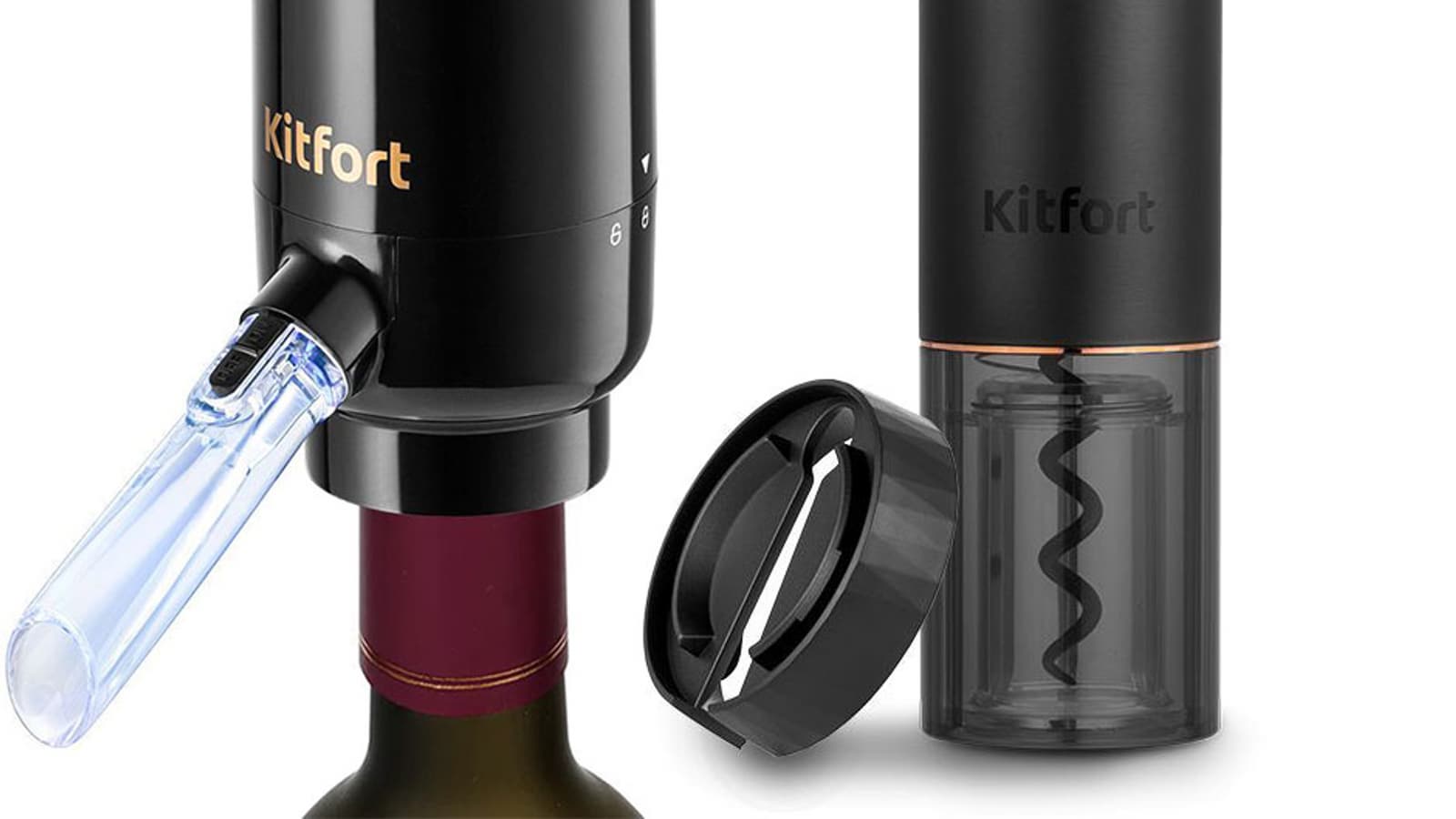 Электрический штопор Kitfort KT-4039 и аэратор для вина Kitfort KT-4042 помогут эффектно подать напиток к столу и удивить гостей.