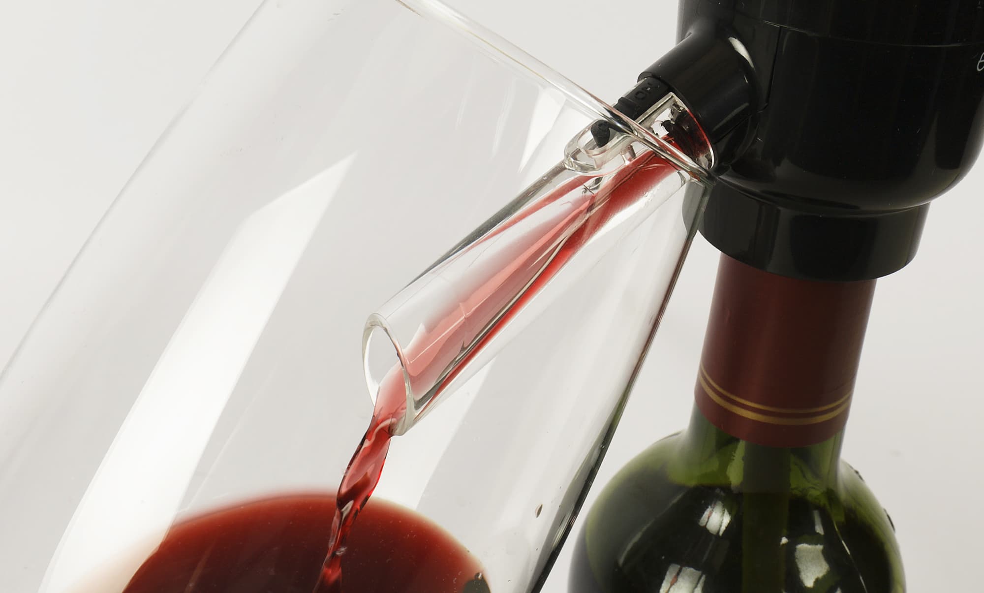 Аэрация способна улучшить вкус многих вин, но для некоторых напитков она противопоказана. При необходимости отключить подачу воздуха переключатель на носике нужно перевести в положение «Off». В этом режиме в трубке не образуются пузырьки, а вино поступает в бокал непрерывной струей.