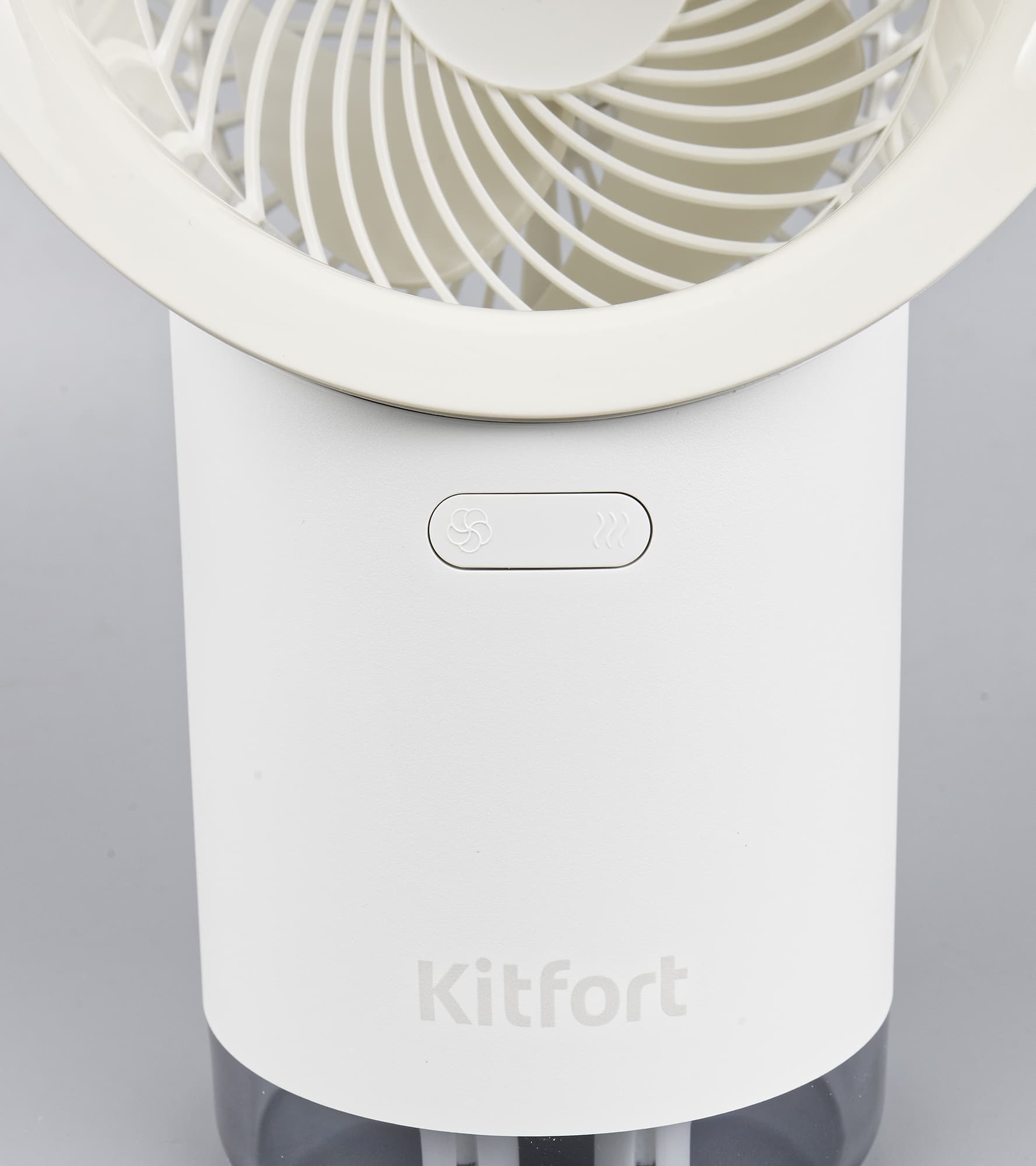 Кнопка-качалка на передней стороне корпуса управляет и вентилятором, и увлажнителем.