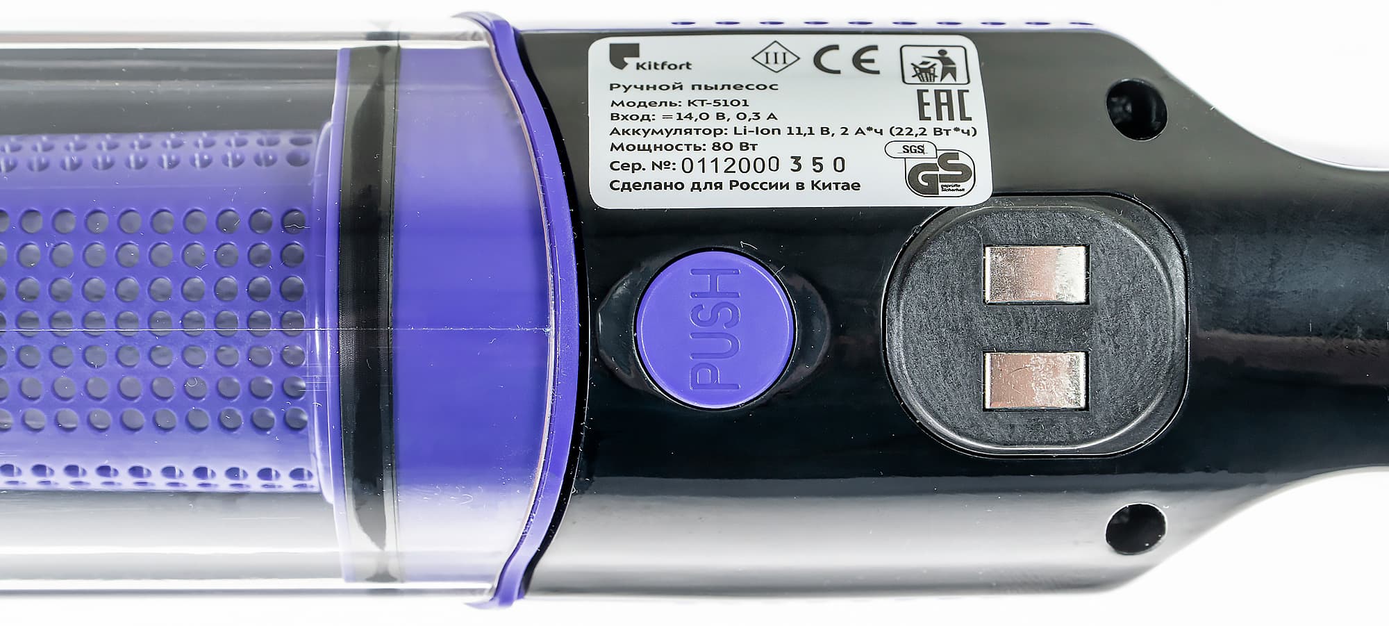Конструкция базы показалась нам удобнее, универсальнее и надежнее, чем у KT-570. Однако, в отличие от предыдущей модели ручного пылесоса, у Kitfort KT-5101 только одна насадка.