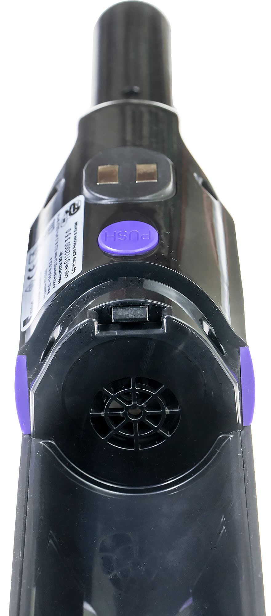 Пылесос управляется единственной кнопкой, включающей и выключающей устройство. Ее расположение подразумевает нажатие большим пальцем, при этом удобно как для левшей, так и для правшей.