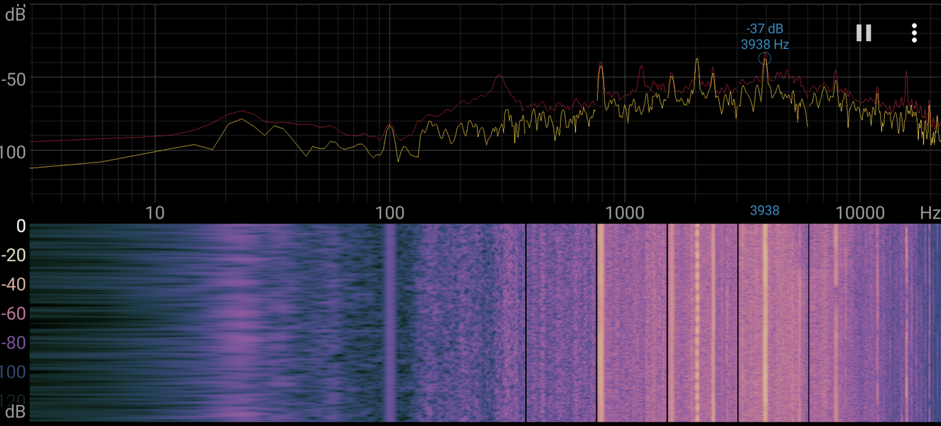Измеренный нами уровень шума при работе прибора неожиданно высок — 84 дБА. Это сравнимо с шумом полноразмерного напольного пылесоса. В звуке работающего двигателя отчетливо слышны не очень приятные высокочастотные гармоники, хорошо заметные и на сонограмме.