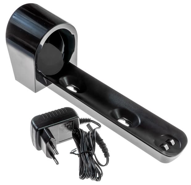 База для зарядки прибора подразумевает настольное размещение или крепление на стену. В первом варианте к ней можно пристегнуть подставку для насадок.