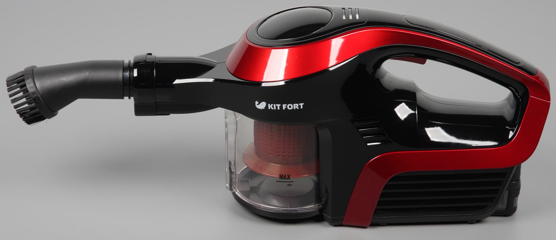 Широкая насадка, оснащенная щеткой с электроприводом, и удлинительная труба превращают компактный аккумуляторный пылесос Kitfort KT-515-1 в пылесос вертикальной компоновки, которым удобно убирать полы. Щелевая насадка и круглая щетка помогут вычистить мебель, одежду или, например, салон автомобиля, а небольшие насадки нескольких видов с узкими удлинительными трубками будут незаменимы при уборке в труднодоступных местах.