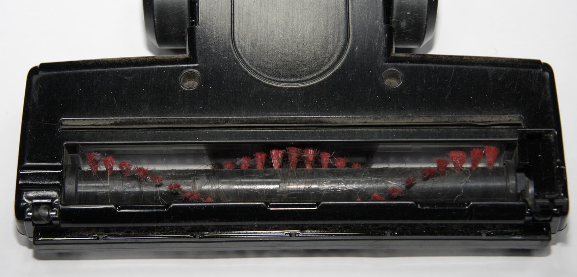 Тем не менее, эту щетку можно подсовывать под протяженные предметы обстановки с небольшим (от 57 мм) просветом. Активно воздействовать на очищаемую поверхность призвана вращающаяся от электромотора щетка с двумя спиральными рядами пучков щетинок средней жесткости. При работе прозрачный колпак позволяет определить, вращается ли щетка, а в перерывах видно, сколько и чего на щетку намоталось и не пора ли ее почистить. Для снятия щетки нужно пальцем сдвинуть фиксатор, откинуть прижимную планку и вытащить щетку за торец с подшипником.