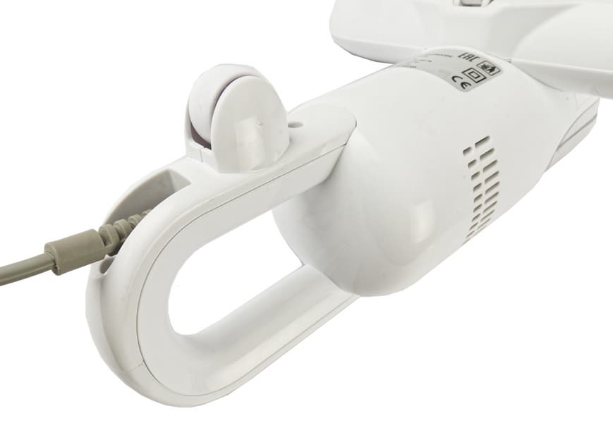 Отверстия для выпуска воздуха расположены по бокам цилиндрического моторного блока. U-образная ручка рассчитана на кисть небольшого размера, людям с крупными руками она может оказаться маловата.