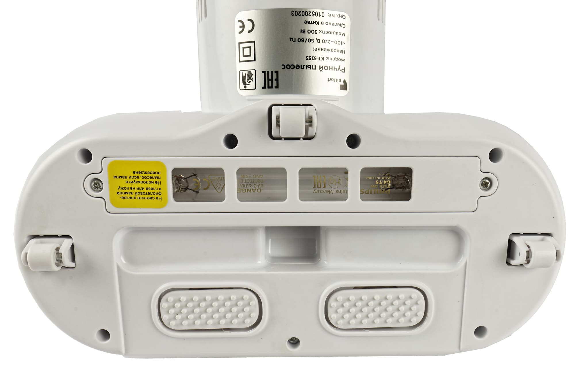 За включение ультрафиолетовой лампы отвечают сенсоры, смонтированные в подвеске роликов: чтобы излучатель заработал, все три должны быть полностью утоплены в корпус. Напоминаем, что смотреть на включенную УФ-лампу категорически не рекомендуется.