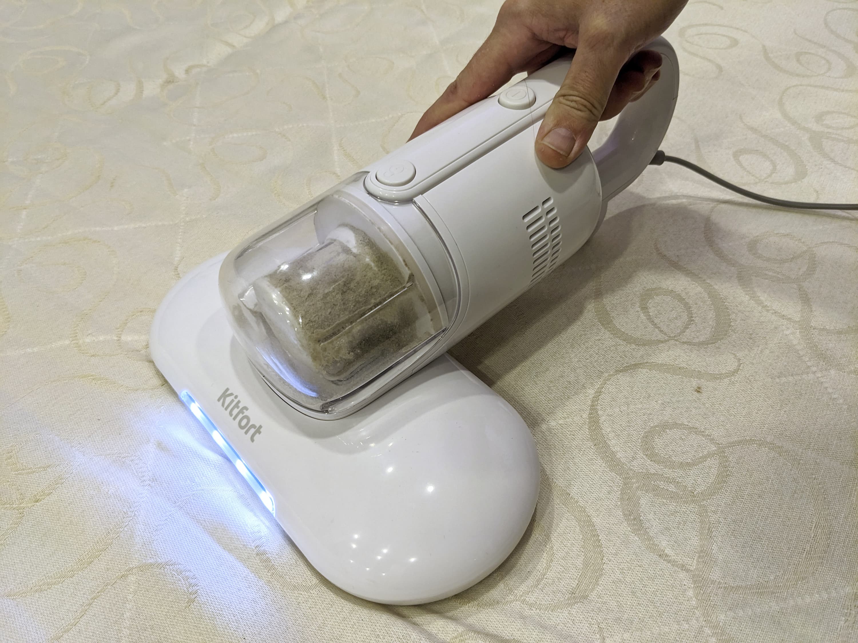 Для очистки мягких поверхностей нужен легкий и удобный ручной пылесос с очень хорошей системой фильтрации и широкой насадкой. Создатели Kitfort KT-5153 пошли дальше и снабдили эту модель УФ-лампой, подсветкой рабочей зоны и еще одним приспособлением для лучшего качества уборки. В ходе тестирования мы увидим, сколько пыли, оказывается, было в матрасе, который регулярно чистят.