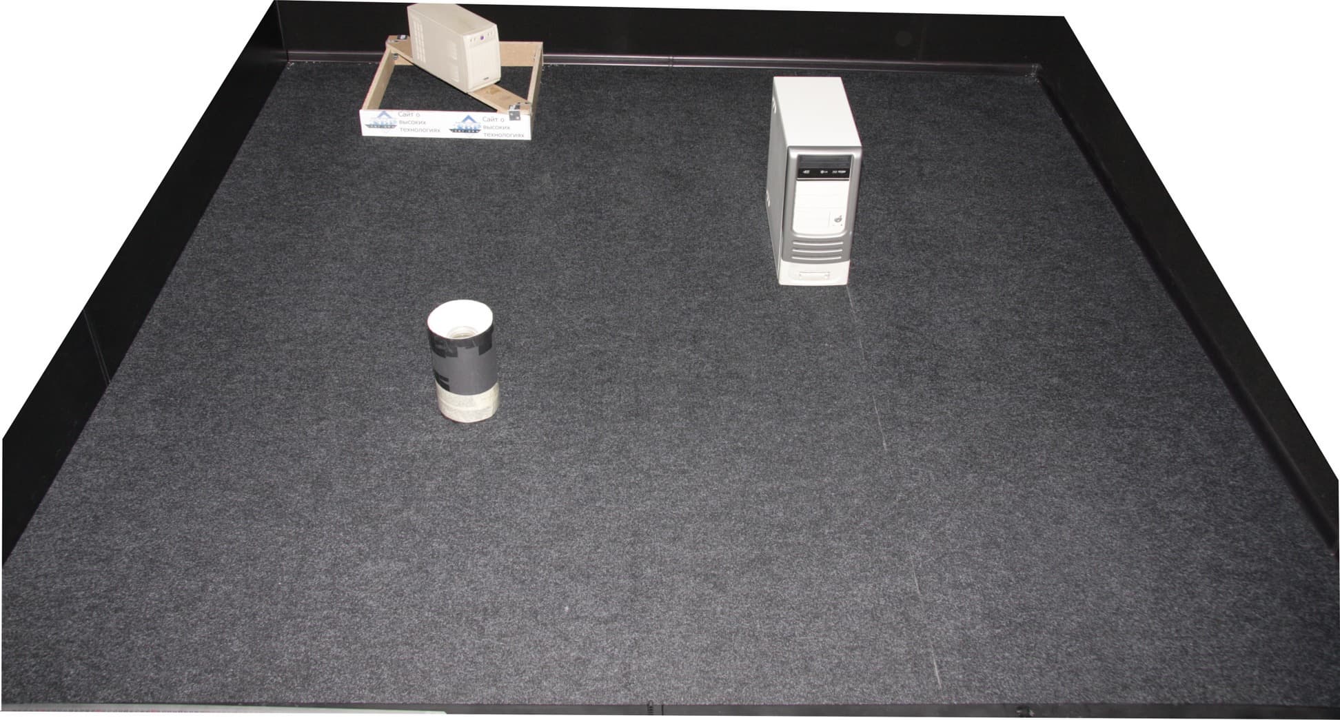Уборка в тестовом помещении до разряда аккумулятора (в этот раз 96 минут) показала практически те же результаты, что и с щеткой, — робот способен убрать почти весь мусор на доступной ему территории, совсем немного риса осталось в углах, около базы практически чисто: