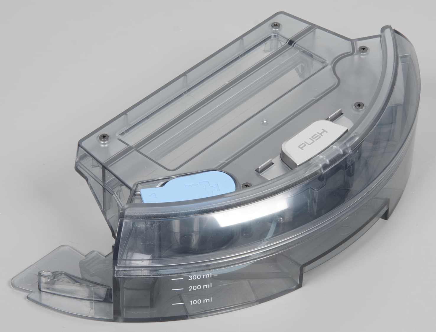 Салфетку можно предварительно увлажнить, а для поддержания ее во влажном состоянии, в резервуар контейнера нужно залить воду. Жидкость на салфетку просачивается через два отверстия в днище резервуара. В процессе уборки нужно следить за уровнем воды, чтобы при необходимости долить воду в резервуар. Электромагнитный клапан, установленный в роботе, дозирует вытекание воды.
