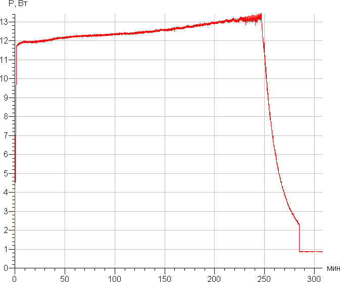 На восстановление заряда роботу требуется провести на базе 4 ч 45 мин. График потребления от сети при прямой зарядке от адаптера: