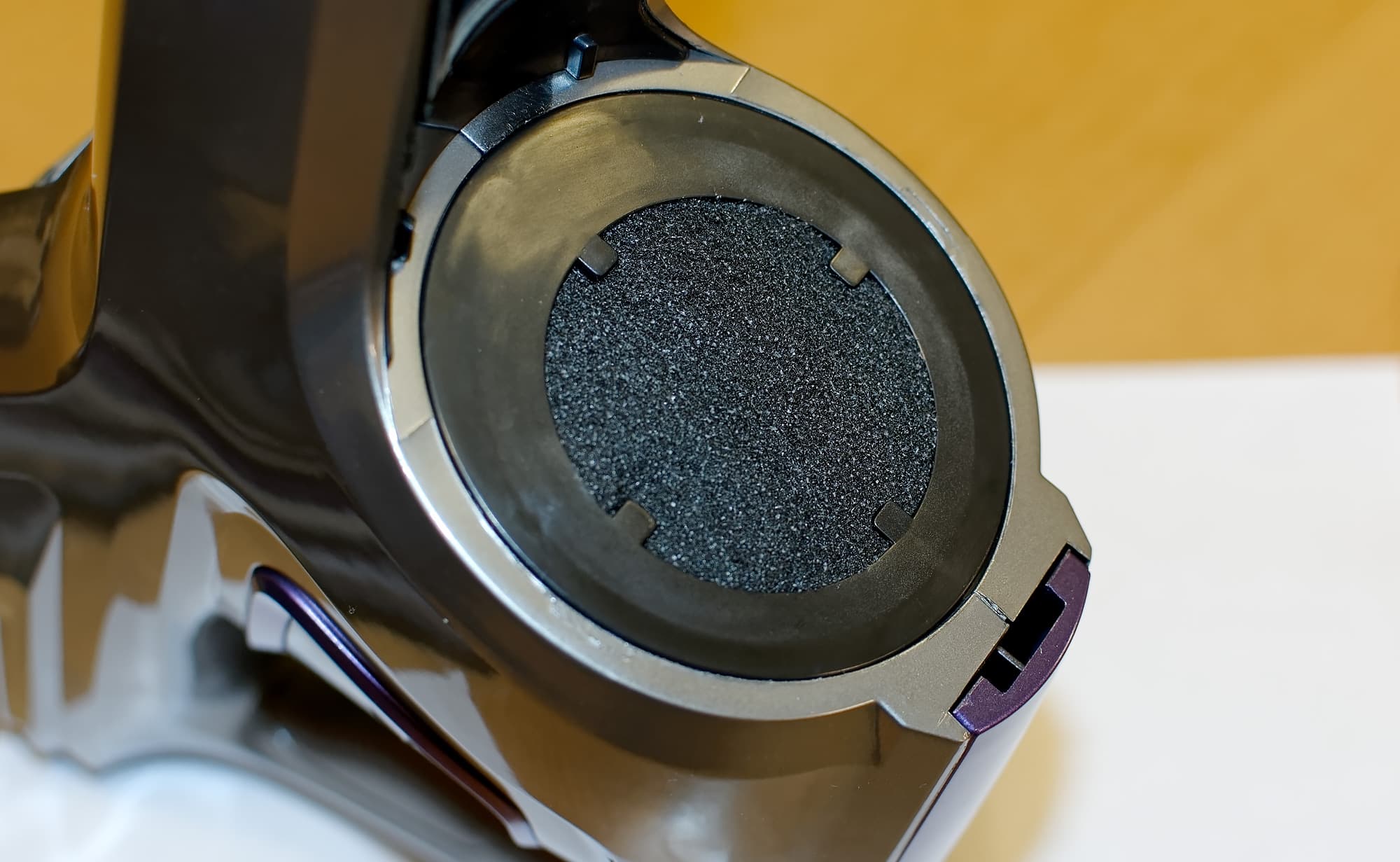 За циклоном находится 2 фильтра — промежуточный и тонкой очистки. Оба достаточно легко снимаются. Промежуточный сделан из поролона, фильтр тонкой очистки — из волокнистого материала.