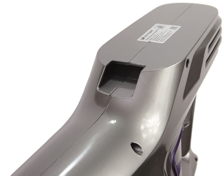 Корпус изготовлен из пластика темно-серебристого цвета с фиолетовыми вставками (на сайте производителя предлагаются и другие цветовые решения — с желтыми и красными). Пластик зеркально-гладкий, даже на ручке. Нельзя сказать, что выглядит пылесос премиально, но за счет цветных вставок впечатление остается приятное: «веселенький» такой приборчик, особенно в желтом цвете.