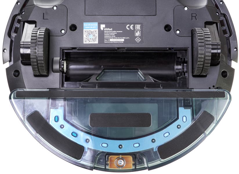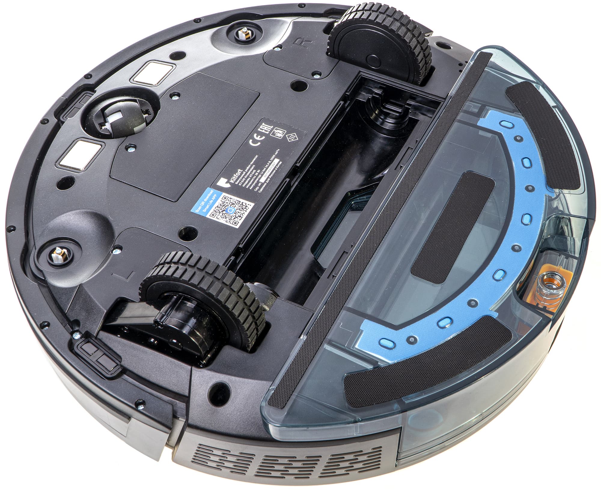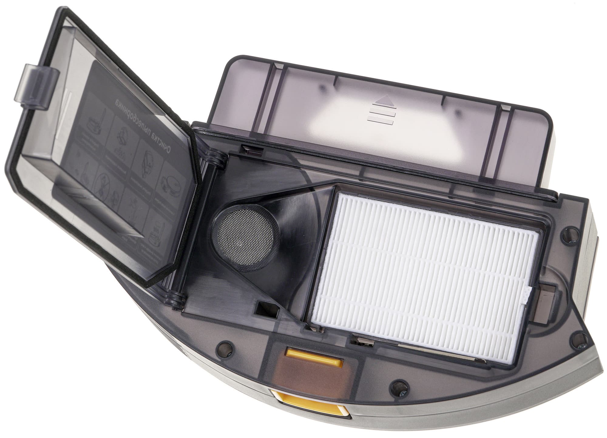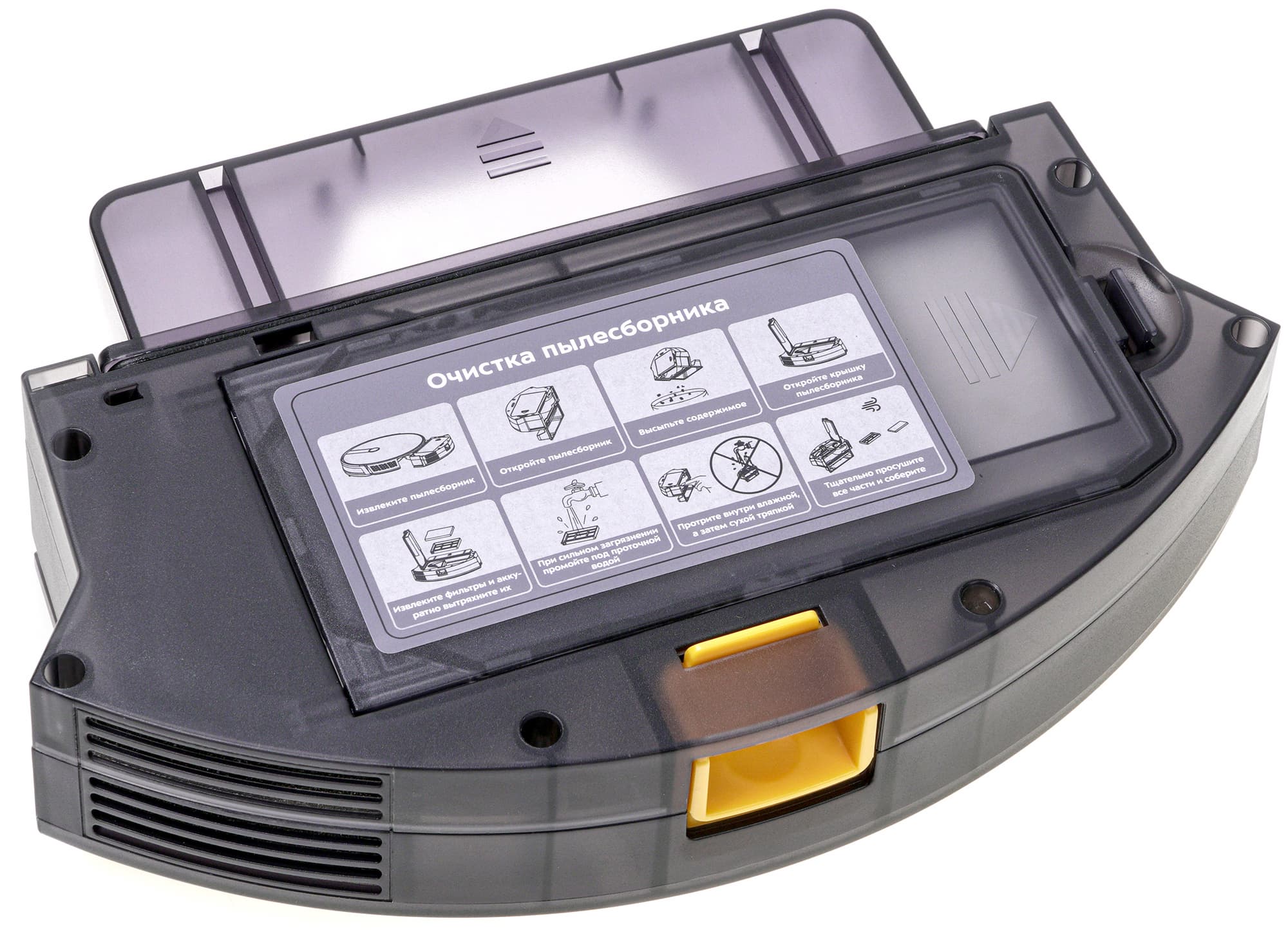 У модуля для влажной уборки, в отличие от предыдущего, нет отдельной крышки для мусорного отсека: предполагается, что влажная уборка проводится во вторую очередь, на поверхностях, уже свободных от основной пыли и грязи. Однако у моющего органа робота все-таки есть мусоросборник небольшого объема: инструкция по очистке рекомендует промывать его, не вытряхивая.