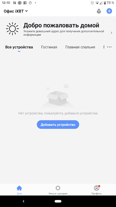 При первом запуске приложение предлагает зарегистрировать новый аккаунт или войти, используя уже существующий. Перед регистрацией необходимо принять пользовательское соглашение и политику конфиденциальности компании. В качестве логина используется телефонный номер или адрес — их требуется верифицировать с помощью проверочного кода. Мы выбрали использование почтового адреса: письмо с нужными сведениями пришло сразу же, без задержек. Пароль для устройства, который предложат ввести после верификации, должен состоять из букв и цифр (минимум 6, максимум — 20). Регистрация закончилась тем, что мы попали на главную страницу приложения.