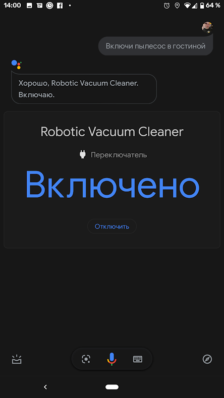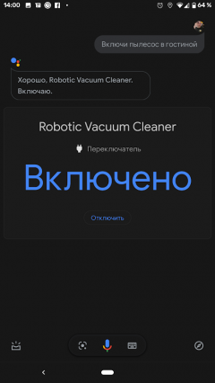 Kitfort KT-545 можно интегрировать и в другие системы управления умным домом, но его функциональность в этом случае, вероятно, будет изменена или сокращена. К примеру, в системе Google Home пылесос виден, но доступны только включение и выключение. Зато голосовое управление роботом работает.