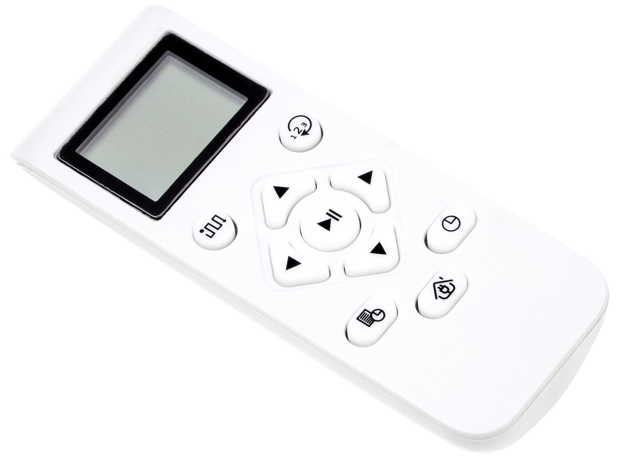 На пульте дистанционного управления пылесосом есть жидкокристаллический дисплей и десять кнопок.