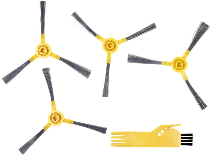 Боковые щетки нужно снять с корпуса, вычистить застрявший в них мусор и протереть ворс влажной, а затем сухой тканью, после чего удалить загрязнения с осей. То же самое надо проделать и с электрощеткой. Если на нее намотались нитки, шерсть и волосы, можно воспользоваться резаком устройства для очистки.