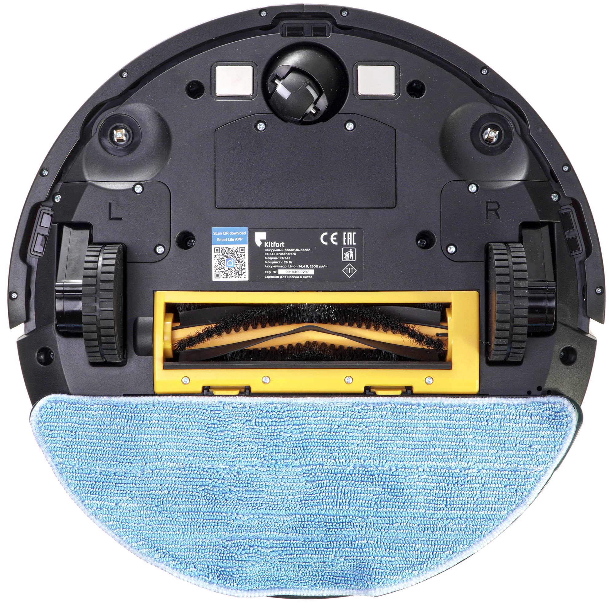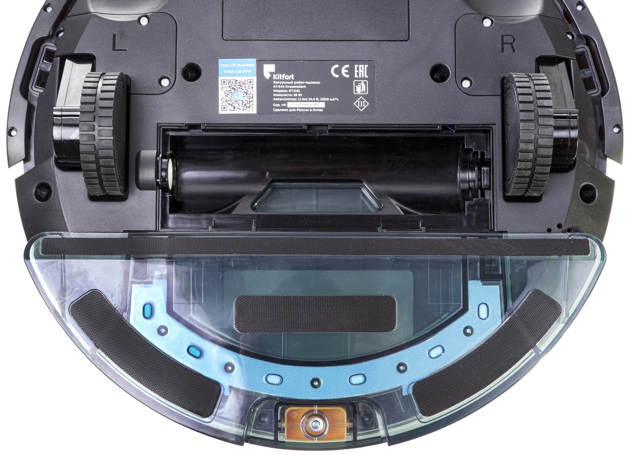 Kitfort KT-545 Krusenstern можно запрограммировать на несколько последовательных включений с помощью мобильного приложения или управлять им с пульта. Он умеет как пылесосить, так и мыть — в комплекте два модуля для каждого из видов уборки.