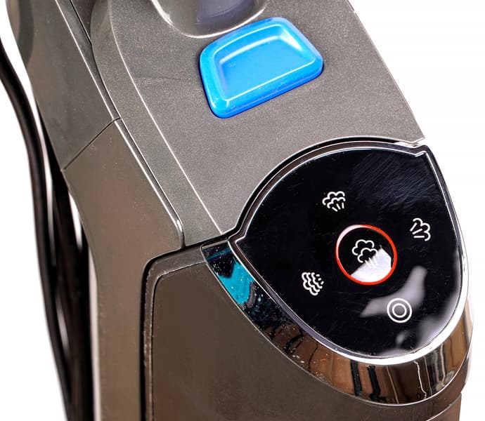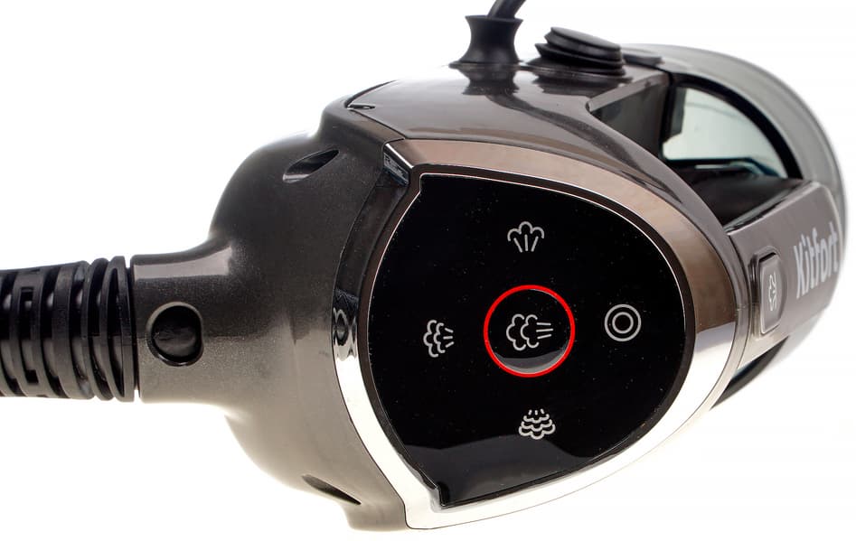 Панель управления парогенератором является продолжением верхней плоскости корпуса пылесоса, когда парогенератор установлен на него. Панель представляет собой единственную кнопку «Пар» с четырьмя индикаторами вокруг нее. Сверху кнопки расположен индикатор включения и готовности пара, справа, слева и снизу — индикаторы уровней подачи пара.