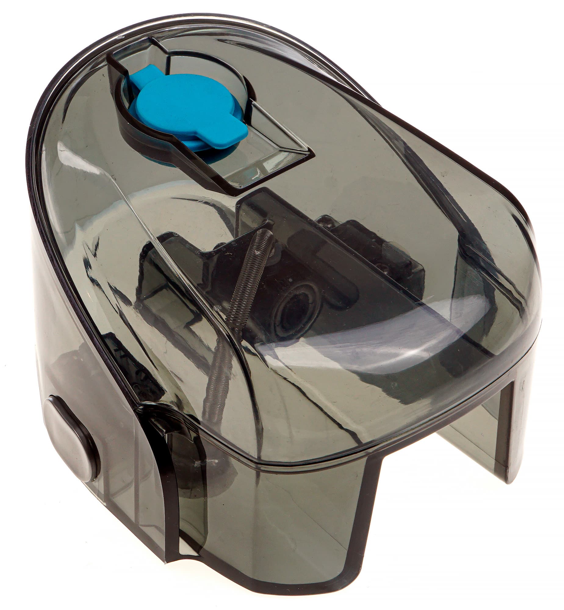 Бак для воды, сделанный из полупрозрачного серого пластика, размещен в нижней части парогенератора и освобождается одновременным нажатием на две кнопки по бокам бака. Горловина для заливки воды закрывается простой резиновой пробкой бирюзового цвета, без дополнительных защелок и прочих конструктивных излишеств.
