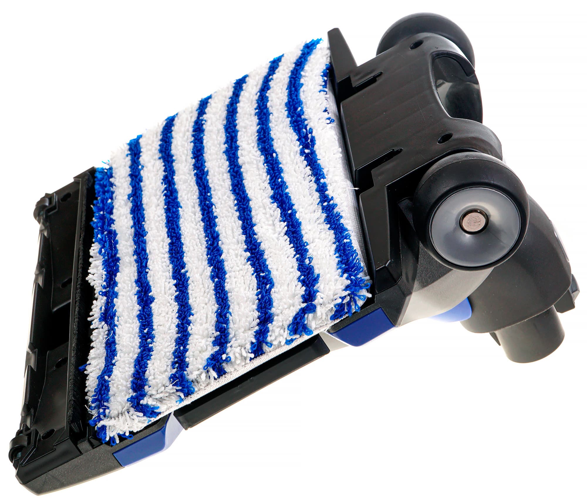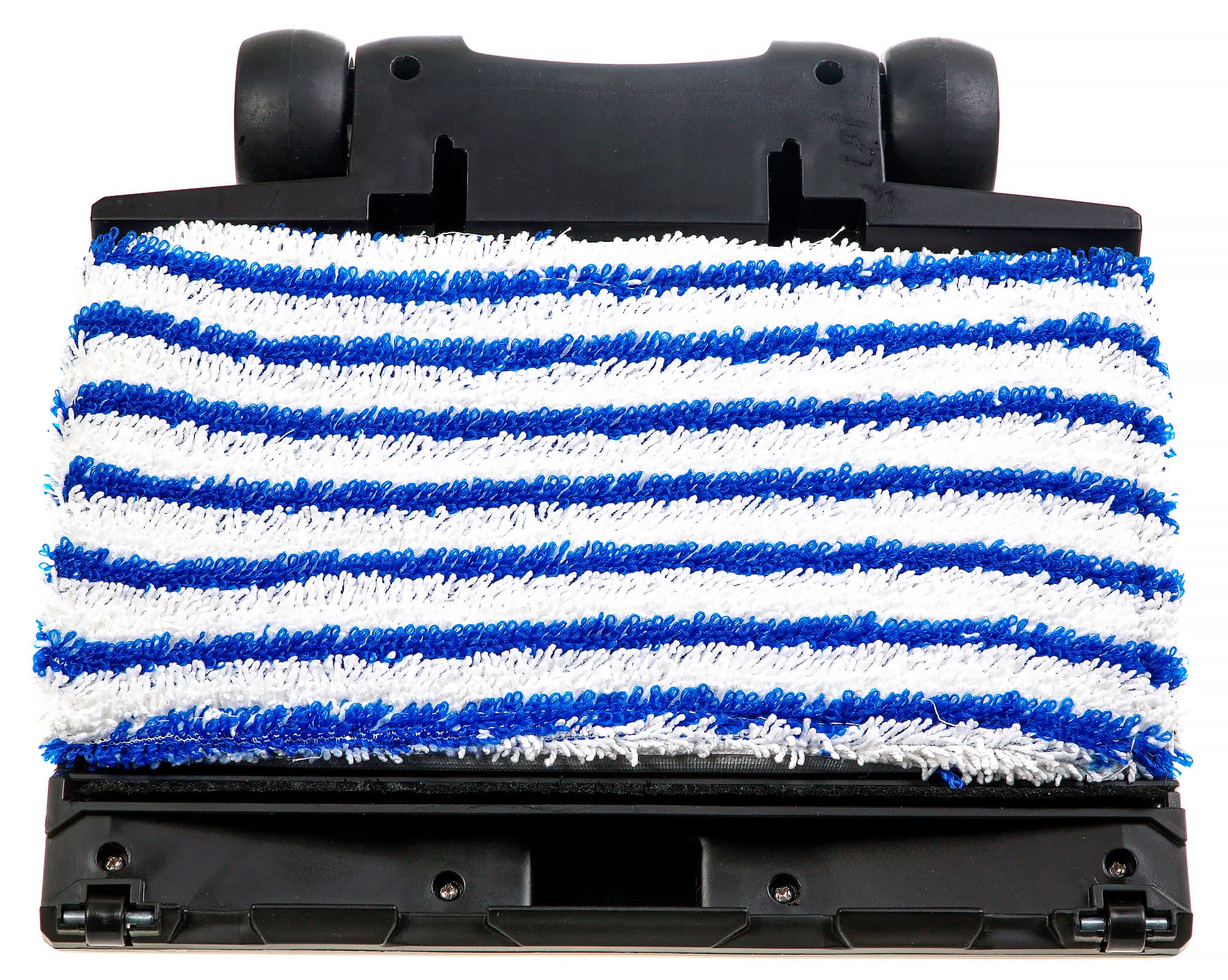 Пылесос комплектуется единственной насадкой — щеткой для пола, на которой закрепляется держатель с тряпкой для отпаривания. Щетка отделяется от корпуса при помощи кнопки на задней стороне корпуса.