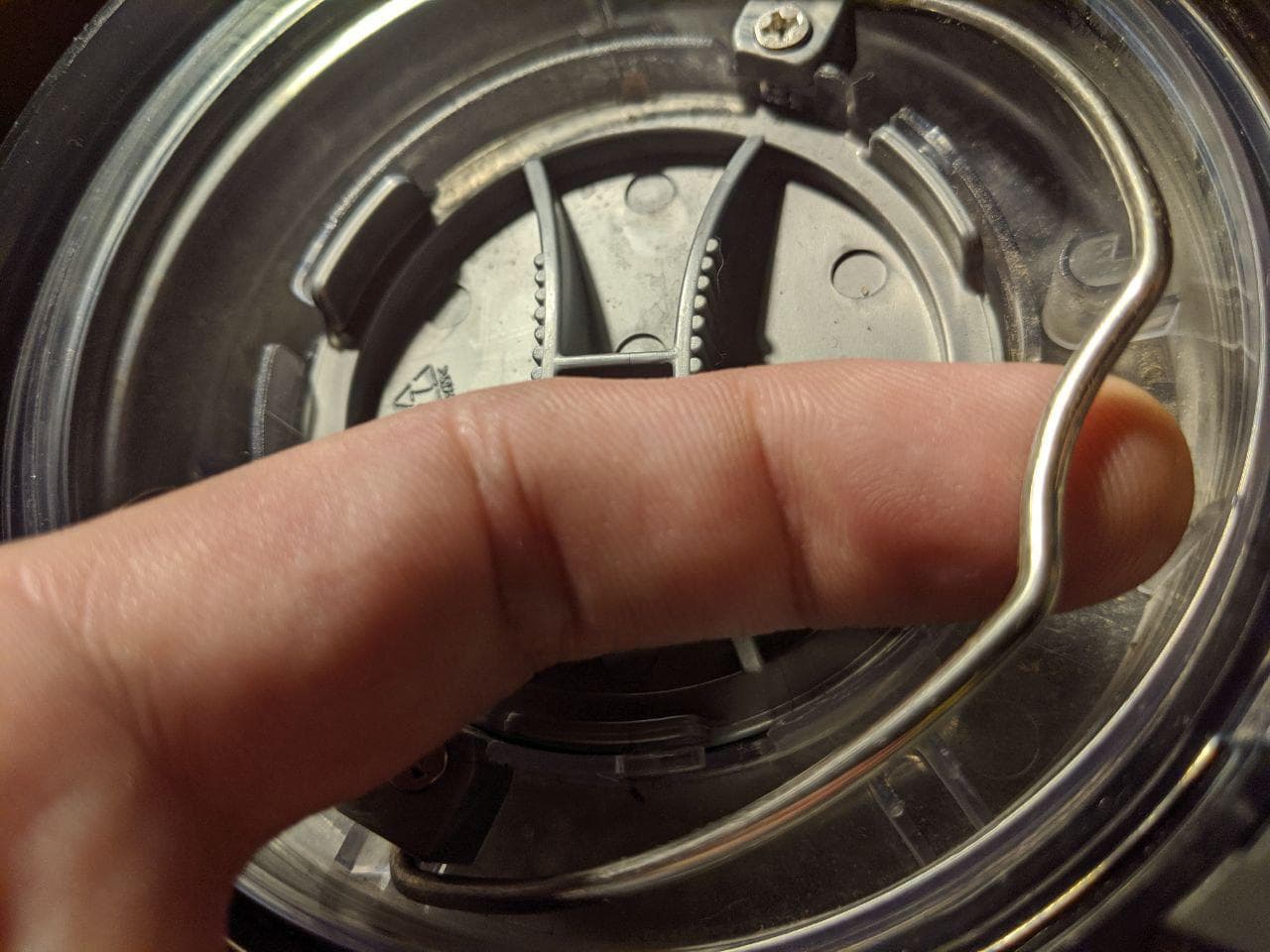 Если делать это пальцем, то вторая фаланга упирается в ребристую стенку пробки, закрывающей фильтр грубой очистки, что сопровождается довольно болезненными ощущениями. Для того чтобы их избежать, мы рекомендуем пользоваться для поднятия удерживающей скобы тонким твердым предметом (к примеру, небольшой отверткой), или, вопреки инструкции, вынимать фильтр по частям, отвинтив сначала пробку, а затем — подняв скобу.
