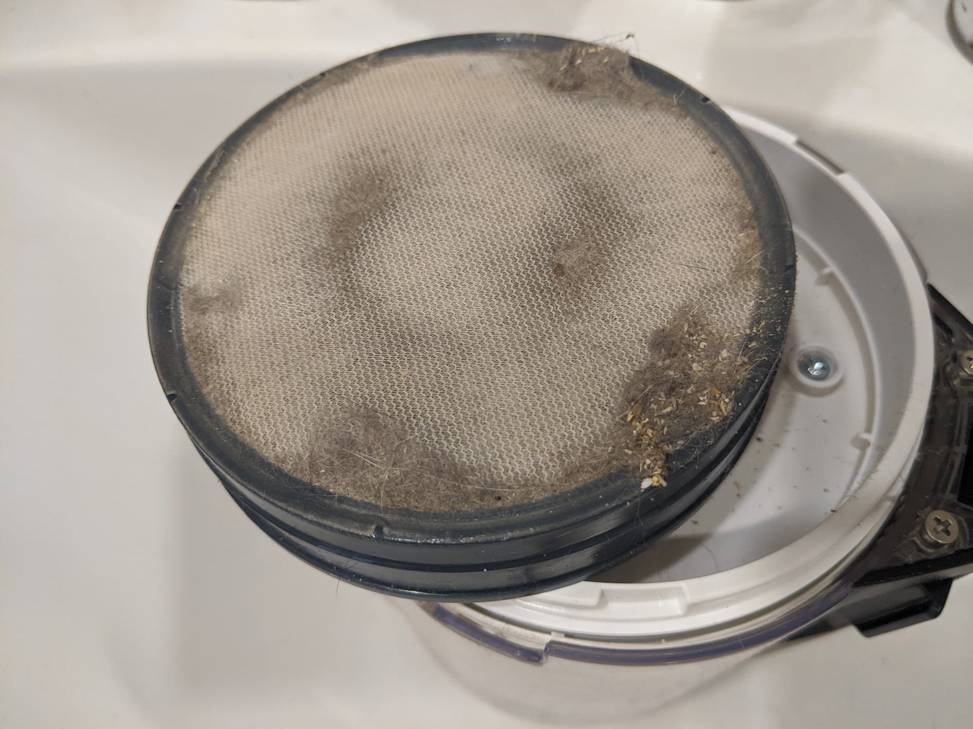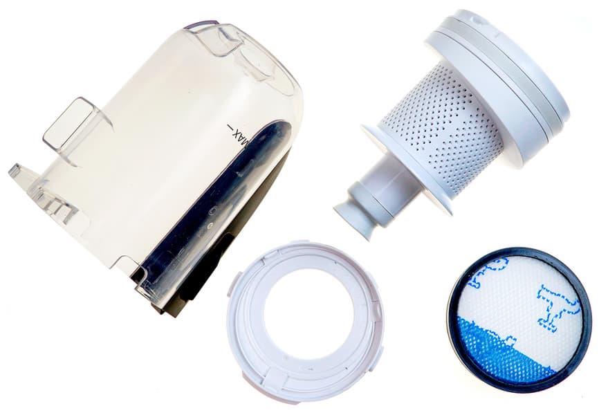 Система фильтрации пылесоса состоит из фильтров грубой и тонкой очистки. Фильтр грубой очистки представляет собой циклон с «юбкой» в нижней части фильтра, отсекающей мусор крупных фракций, и пластиковой цилиндрической сеткой, призванной задерживать среднефракционный мусор.