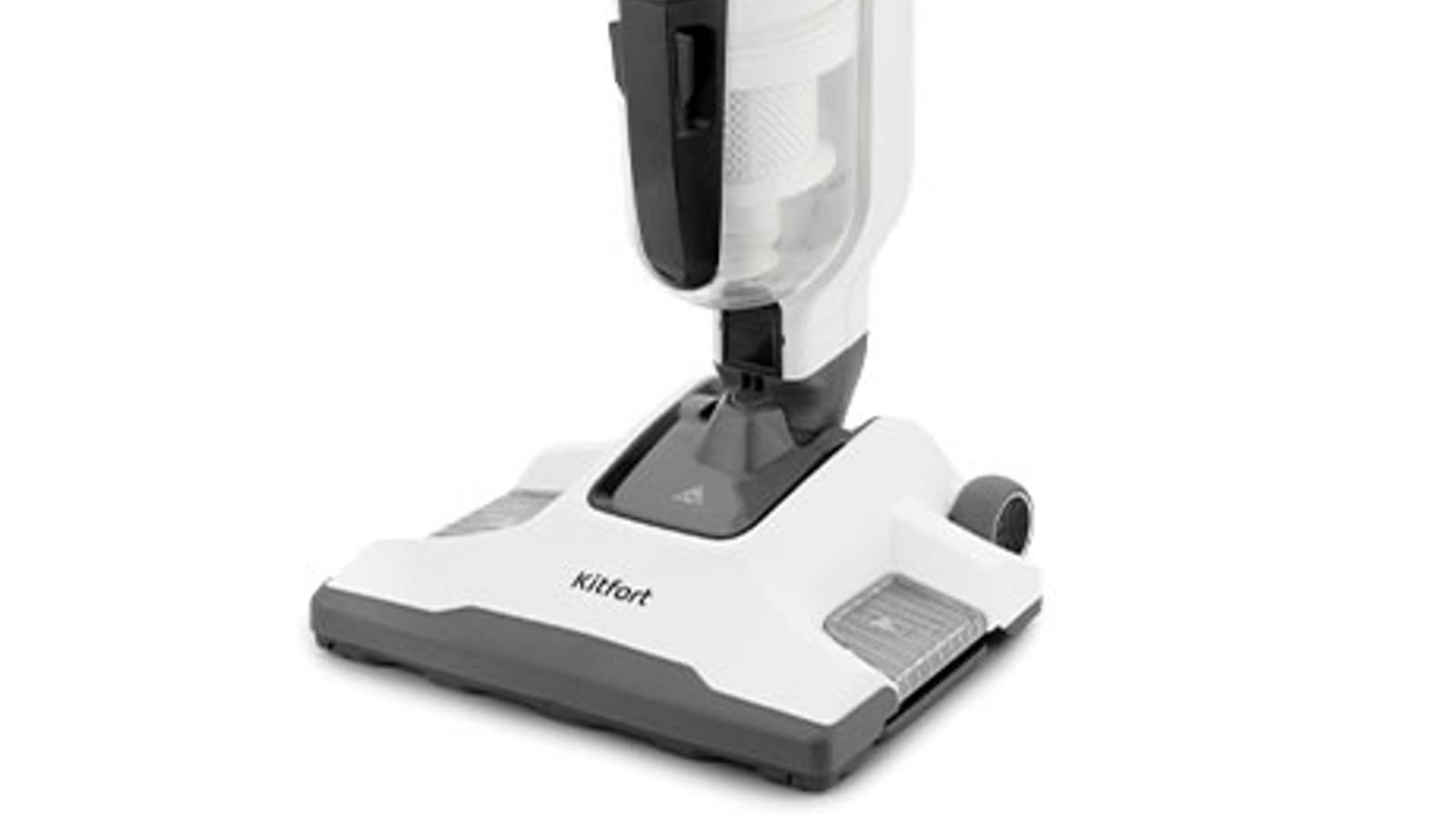 Конструкция пылесоса Kitfort KT-556 вполне традиционна для вертикальных паровых пылесосов — основной блок пылесоса и парогенератора, рукоятка с элементами управления и напольная насадка с двумя степенями свободы.