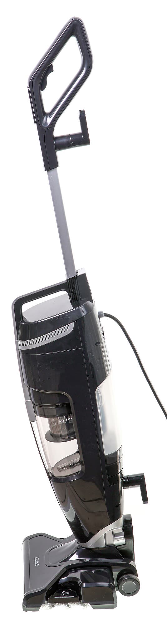 Через полупрозрачный корпус емкости для воды, расположенной на задней, обращенной к пользователю, стороне контролировать расход воды очень удобно. У большинства паровых пылесосов, попадавших к нам на тестирование, переднее расположение бака, и KT-575 приятно выделяется на общем фоне.