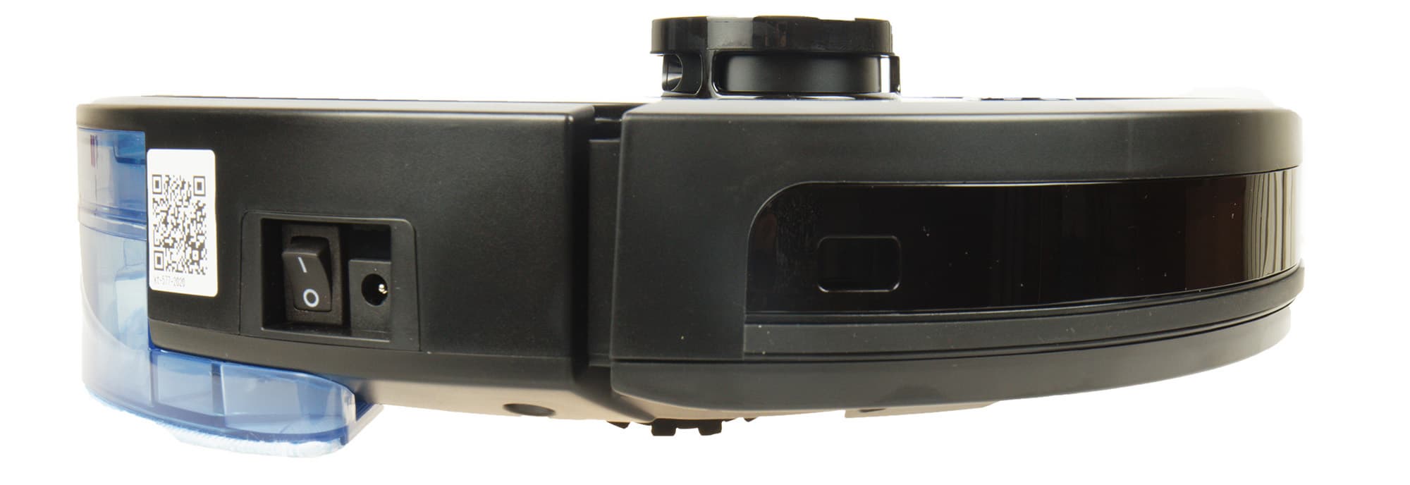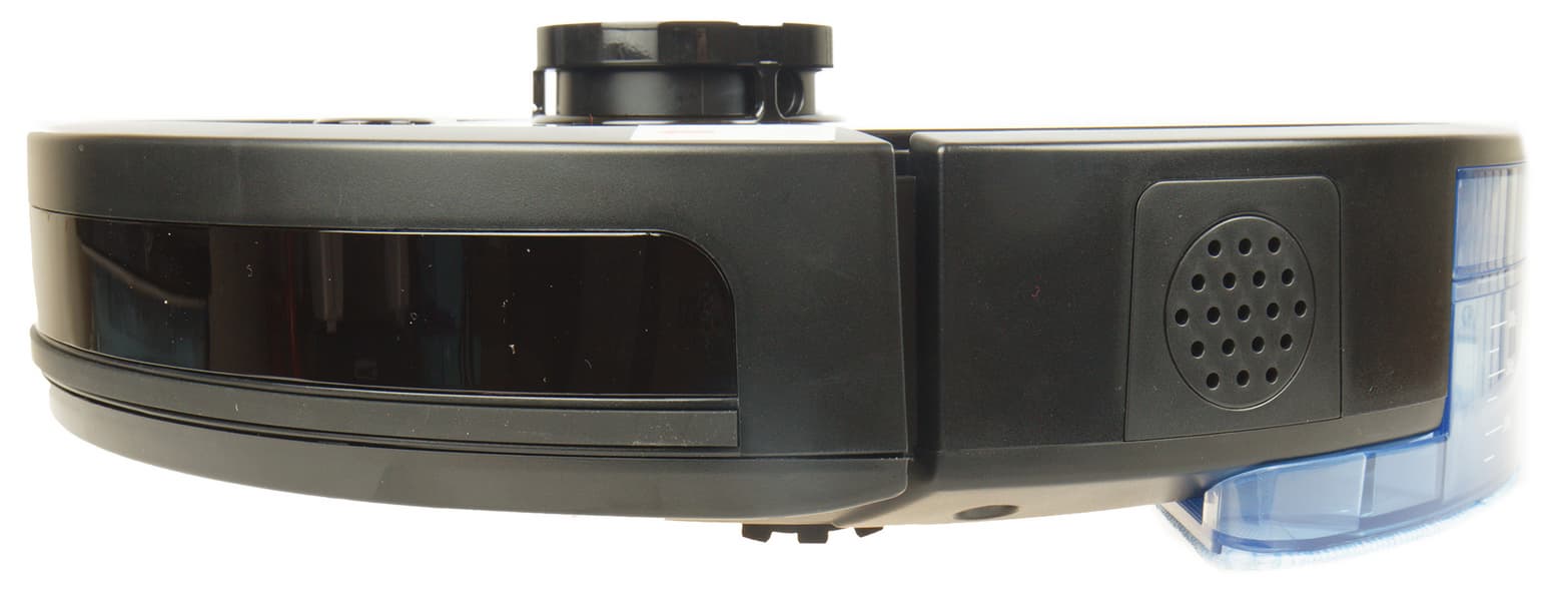 Переднюю половину боковой стороны устройства занимает подвижный подпружиненный бампер с ходом в 4-5 мм. Его нажатие вызывает срабатывание механических датчиков сближения. За затемненным стеклом бампера размещаются ИК-датчики, позволяющие пылесосу обнаруживать препятствия, находить базу и принимать сигналы пульта управления. Дополнительный ИК-датчик расположен справа: его задача — следить, что происходит сбоку от пылесоса, и не давать устройству «тереться» о стену. С этой же стороны находится клавиша включения устройства и разъем для подзарядки робота в обход «базы».