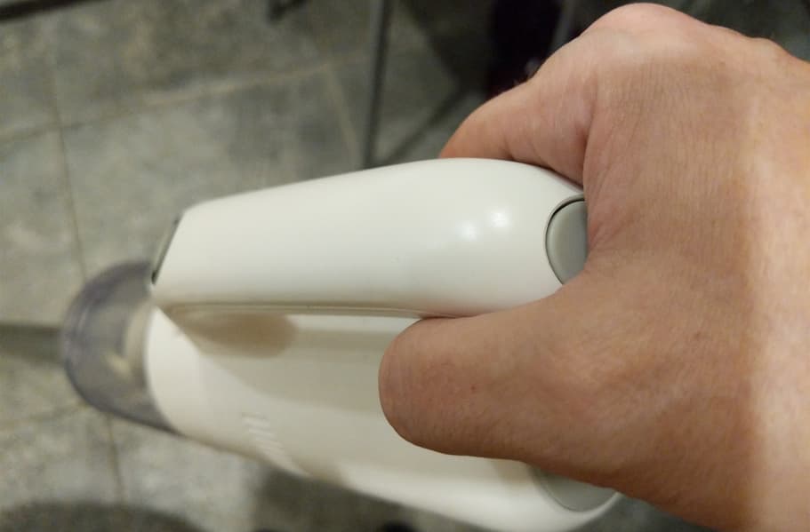 Однако при изменении хвата очень легко нажать на кнопку переключения режимов на середине рукоятки. Выбор места для нее мы не можем назвать удачным — даже утопленную в корпус кнопку мы неоднократно нажимали при уборке.