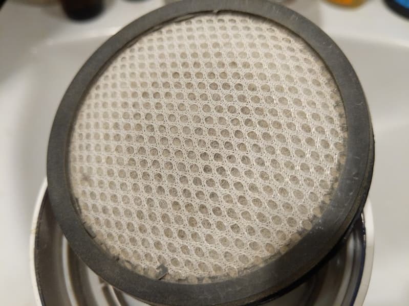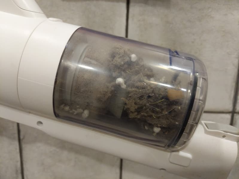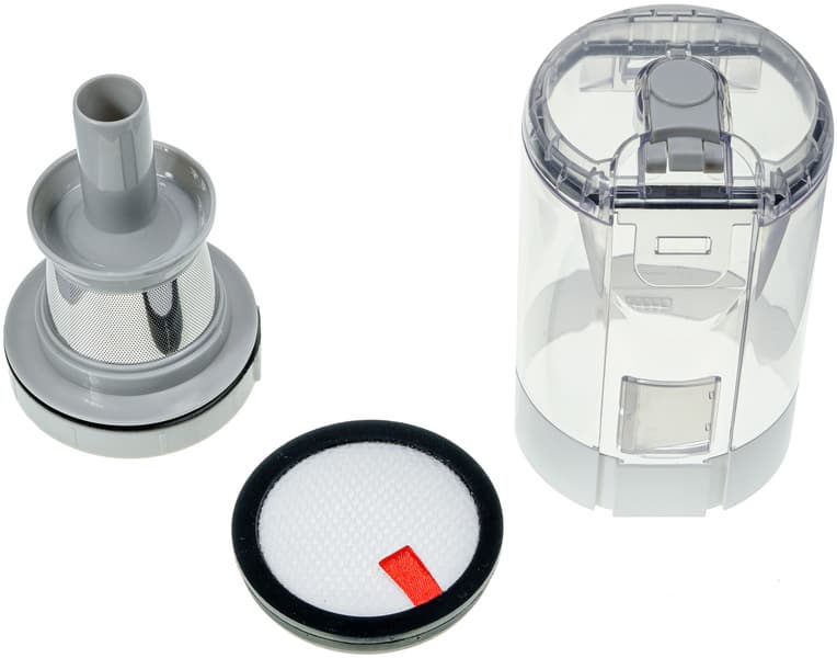Мусоросборник и компоненты циклонного фильтра при необходимости можно мыть водой без моющих средств. Фильтр тонкой очистки производитель также разрешает мыть, но предупреждает, что после мытья и просушки внутренний материал может слегка скататься — это, как гласит инструкция, нормально и не является неисправностью. После мытья все компоненты системы фильтрации должны быть тщательно высушены.