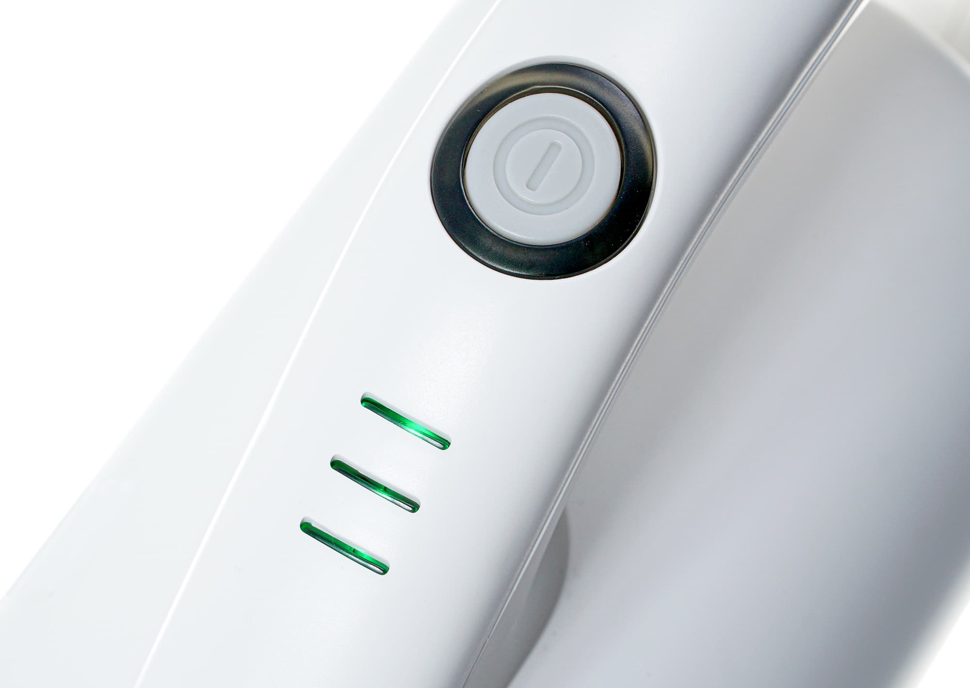 Трехсекционный индикатор уровня заряда находится перед кнопкой включения. В процессе заряда три зеленых светодиода последовательно мигают, при работе горят ровным светом.