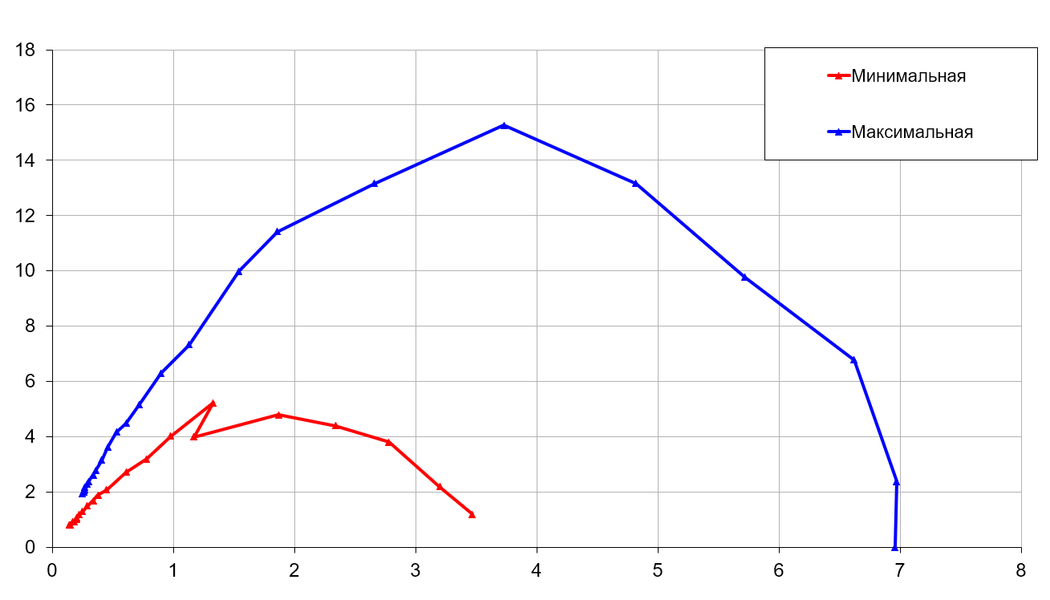 Мощность всасывания (что это такое и как мы ее измеряем, описано в отдельной статье) мы определяли при работе пылесоса без трубы и насадок, во всех трех режимах. Зависимость мощности всасывания от создаваемого разрежения приведена на графике ниже: