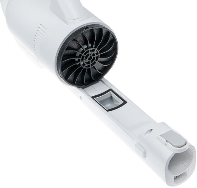 У Kitfort KT-588 два режима мощности. При включении прибор работает в экономичном режиме, а на турбо-режим переключается с помощью еще одной кнопки на ручке — она расположена в средней части, в районе изгиба.