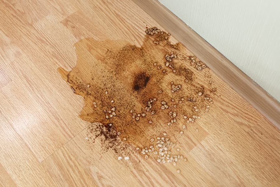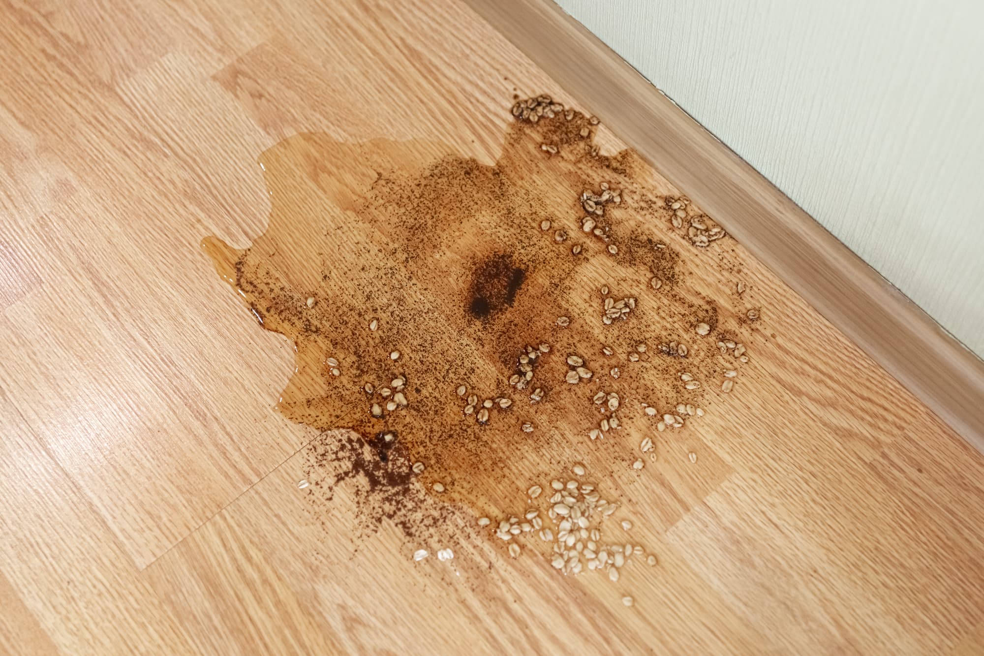 Далее мы усложнили задачу, создав на полу пятно из крепко заваренного каркаде с добавлением 10 ложек сахара. За три часа жидкость на ламинате высохла и превратилась в липкую корочку.