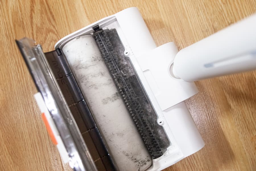 Очищать валик и турбощетку производитель рекомендует раз в несколько использований. После их извлечения из корпуса швабры, при необходимости можно очистить посадочные места турбощетки и валика от пыли и прочих загрязнений. Допускается мыть турбощетку проточной водой. Для удаления намотавшихся на нее шерсти и волос, рекомендуется провести кончиком канцелярского ножа по специальному пазу на щетке и срезать все что накопилось, удалив остатки руками. Валик также можно мыть под проточной водой с мылом, без применения металлических и острых предметов. Можно почистить и резинку для протирки пола. Для это достаточно сдвинуть фиксатор резинки (на дне корпуса швабры) и вытащить ее.
