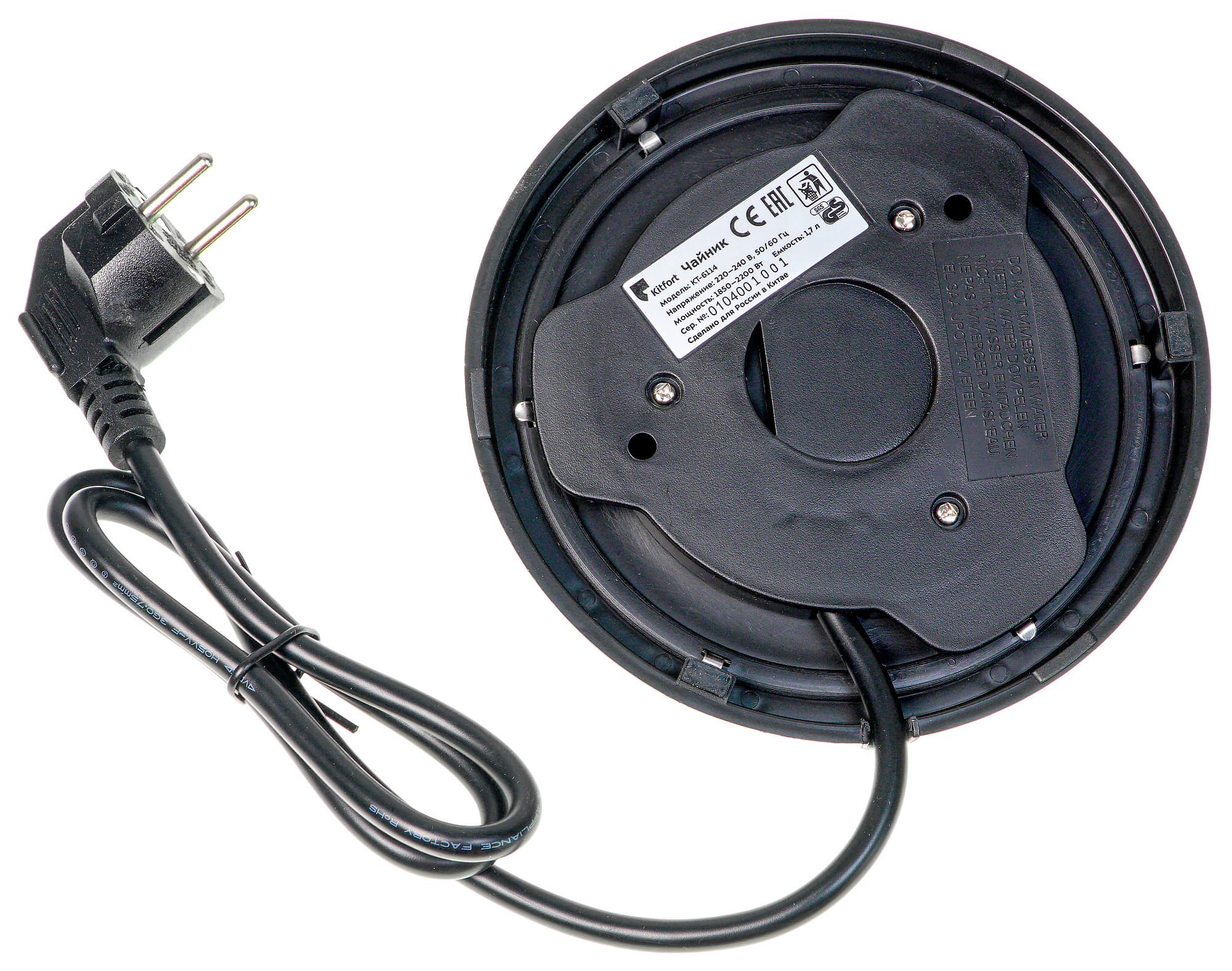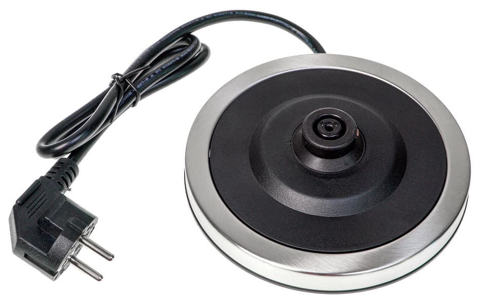 База у нашего чайника сделана из пластика, частично закрытого нержавеющей сталью.