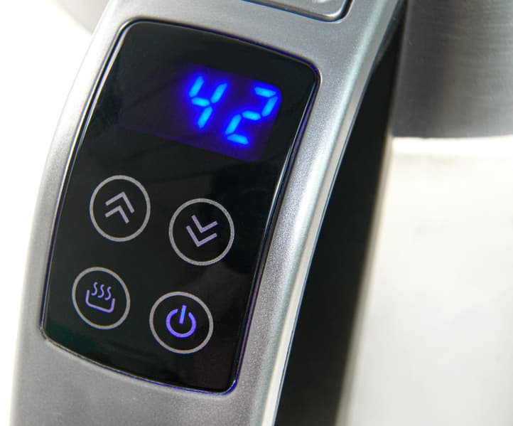 Управление осуществляется с помощью четырех сенсорных кнопок и миниатюрного дисплея. В целом тут все оказалось интуитивно понятно: LED-дисплей отображает текущую температуру воды, а при установке температуры — температуру, до которой нужно нагреть воду.