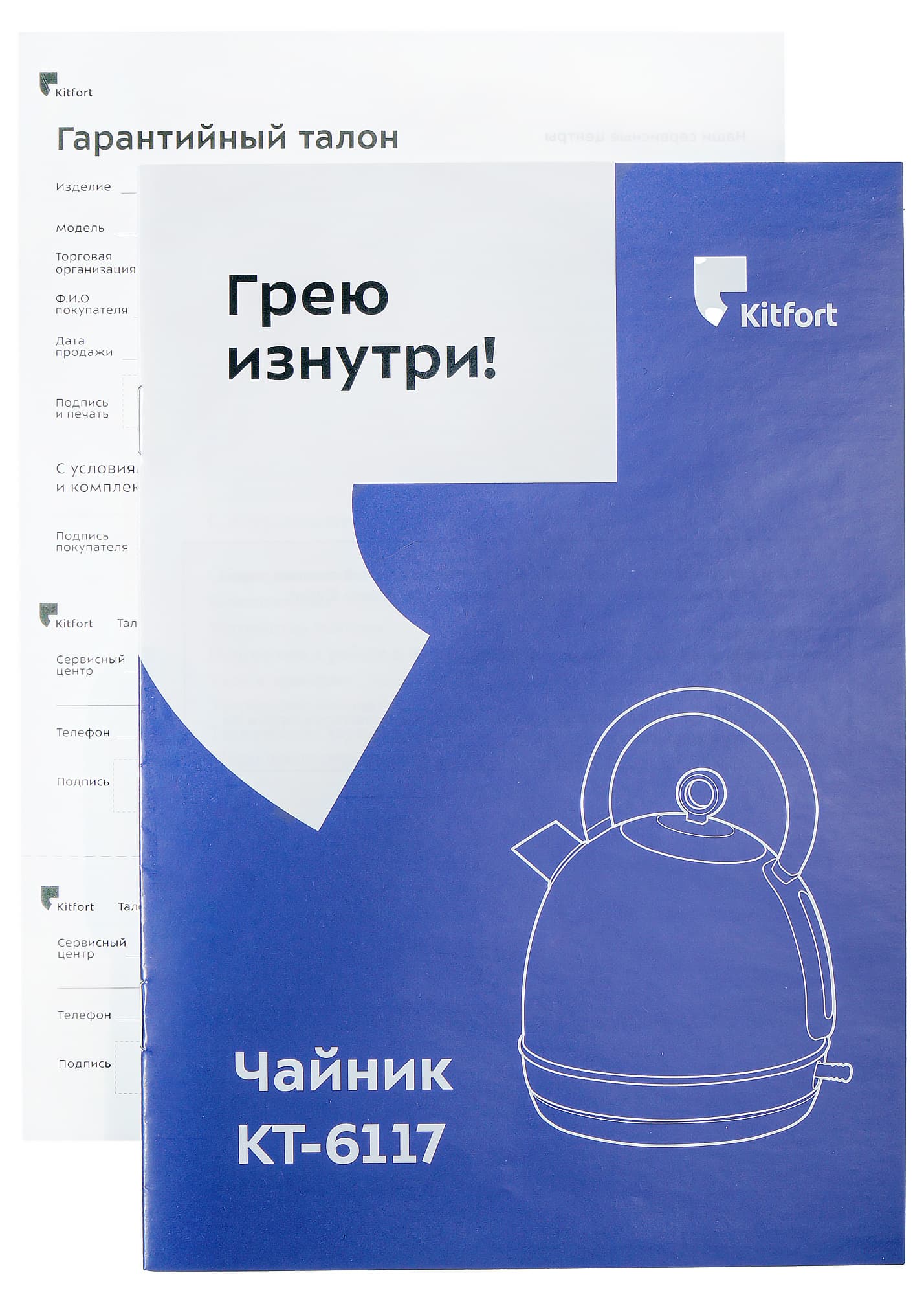 Инструкция к прибору оформлена в стандартном стиле Kitfort (едином для всех товаров). Она представляет собой черно-белую брошюру (с голубой обложкой) формата А5, отпечатанную на качественной глянцевой бумаге.