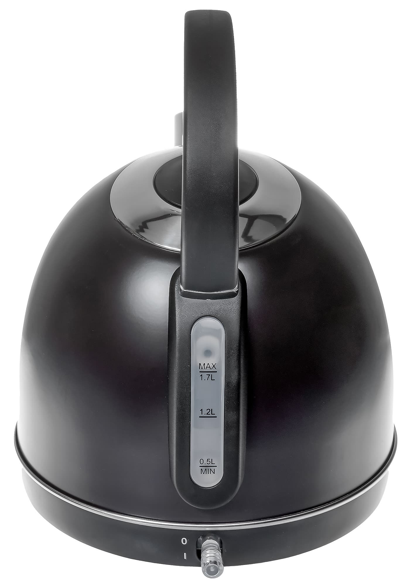 Колба у чайника сделана из нержавеющей стали. Покрытие — черная матовая краска.